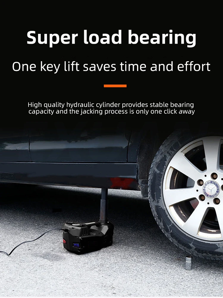 This electric car jack allows you to lift your car and change tires with ease,no experience required