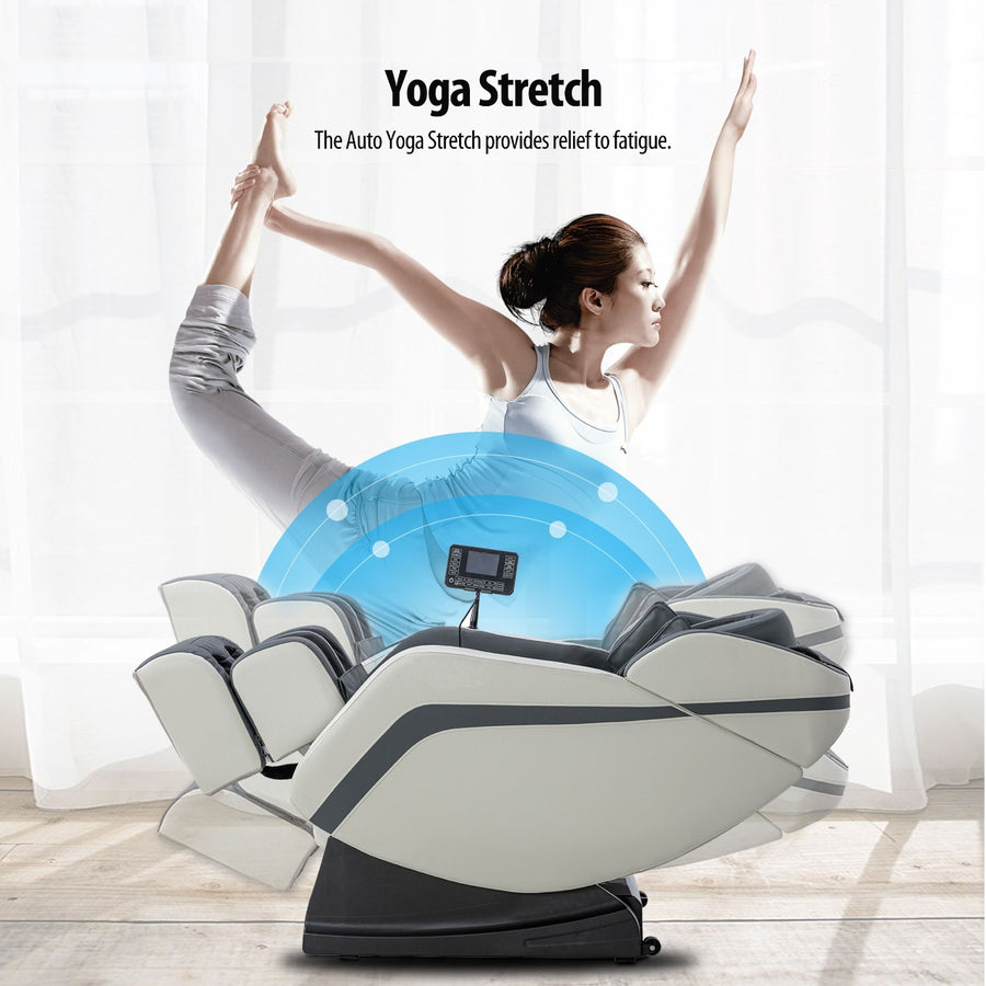 【SL TRACK ROLLERS DESIGN】The intelligent massage chair has Double SL Track ergonomically designed to perfectly fit the body’s curves, it not only has a larger massage range but also achieves precise knocking, shiatsu, kneading, tapping, and clapping to relax your whole body, combining the Thai-style/Yoga Stretching massage to perform a better massage experience.